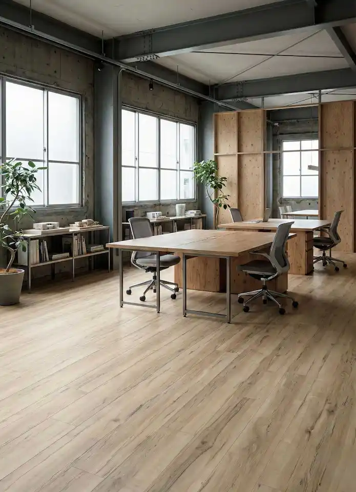 piso lvt moderno rustico amba em escritorio corporativo com iluminação natural