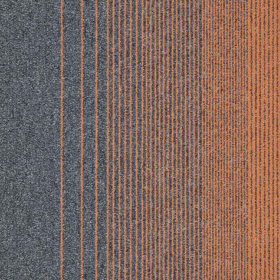 carpete modular laranja instalado em recepção linha Eteris